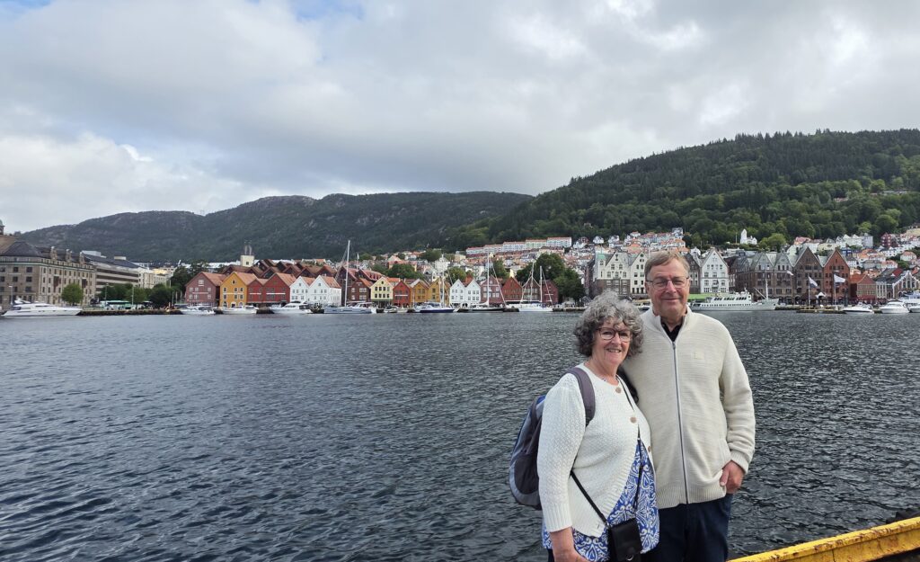 Om 11 uur vertrekken we van boord. We lopen ongeveer 2 km naar de wijk Bryggen op advies van ervaren Noorwegengangers😉. De oude havenwijk van Bergen, staat op de UNESCO Werelderfgoedlijst. Eerst bekijken we het van de overkant van het water, harborview dus. Dan lopen we om en zien we in een zijstraatje de ingang naar de Fløibanen. Dat kunnen we beter als eerste doen vind ik, nu is het weer nog goed. Altijd maar afwachten of dat zo blijft.